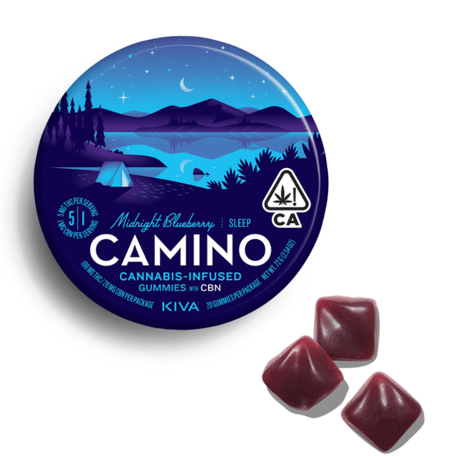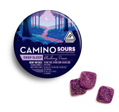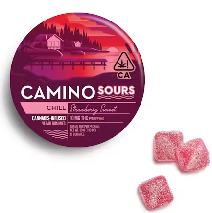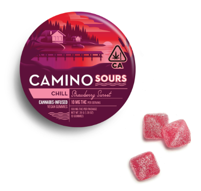 A few products consistently show up across the most locations. Camino Wild Berry 'Chill' Gummies [20pk] (57 stores), Camino Midnight Blueberry 5:1 'Sleep' Gummies [20pk] (51 stores), and Camino Sours 'Chill' Strawberry Sunset Gummies [10pk] (48 stores).