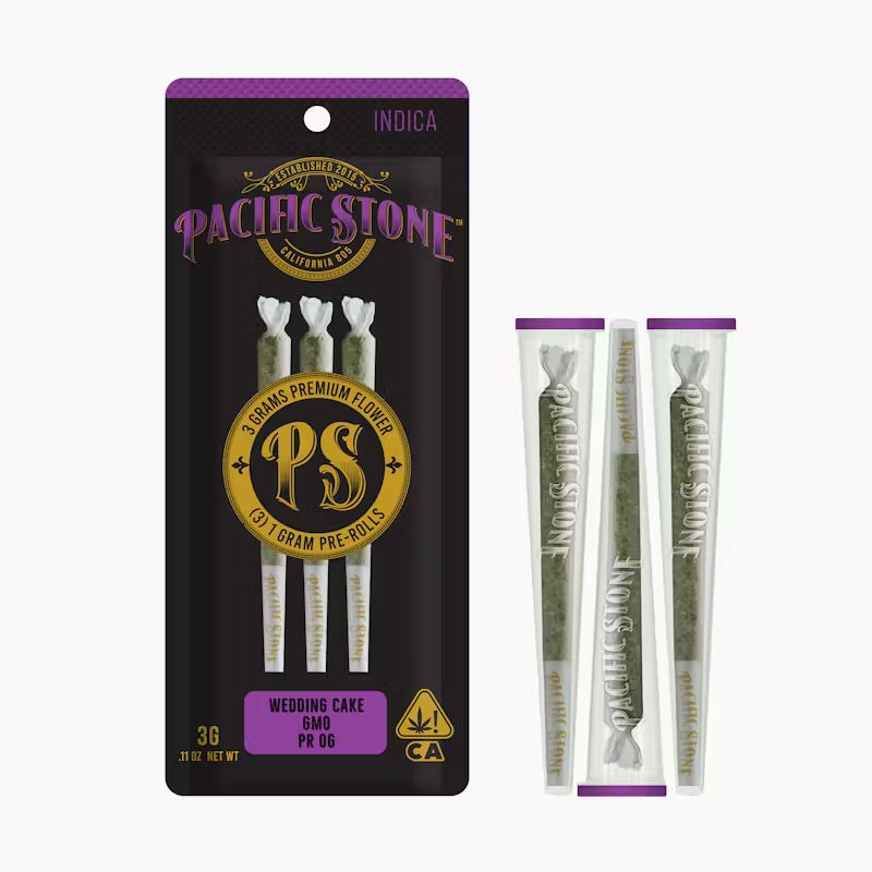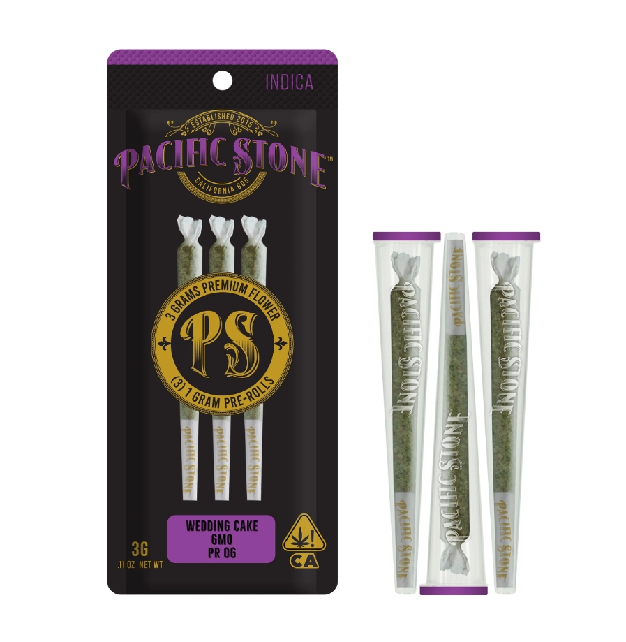 Pacific Stone Indica Variety Preroll 3pk 3g - Wedding Cake (I) PR OG (I) GMO (I)
