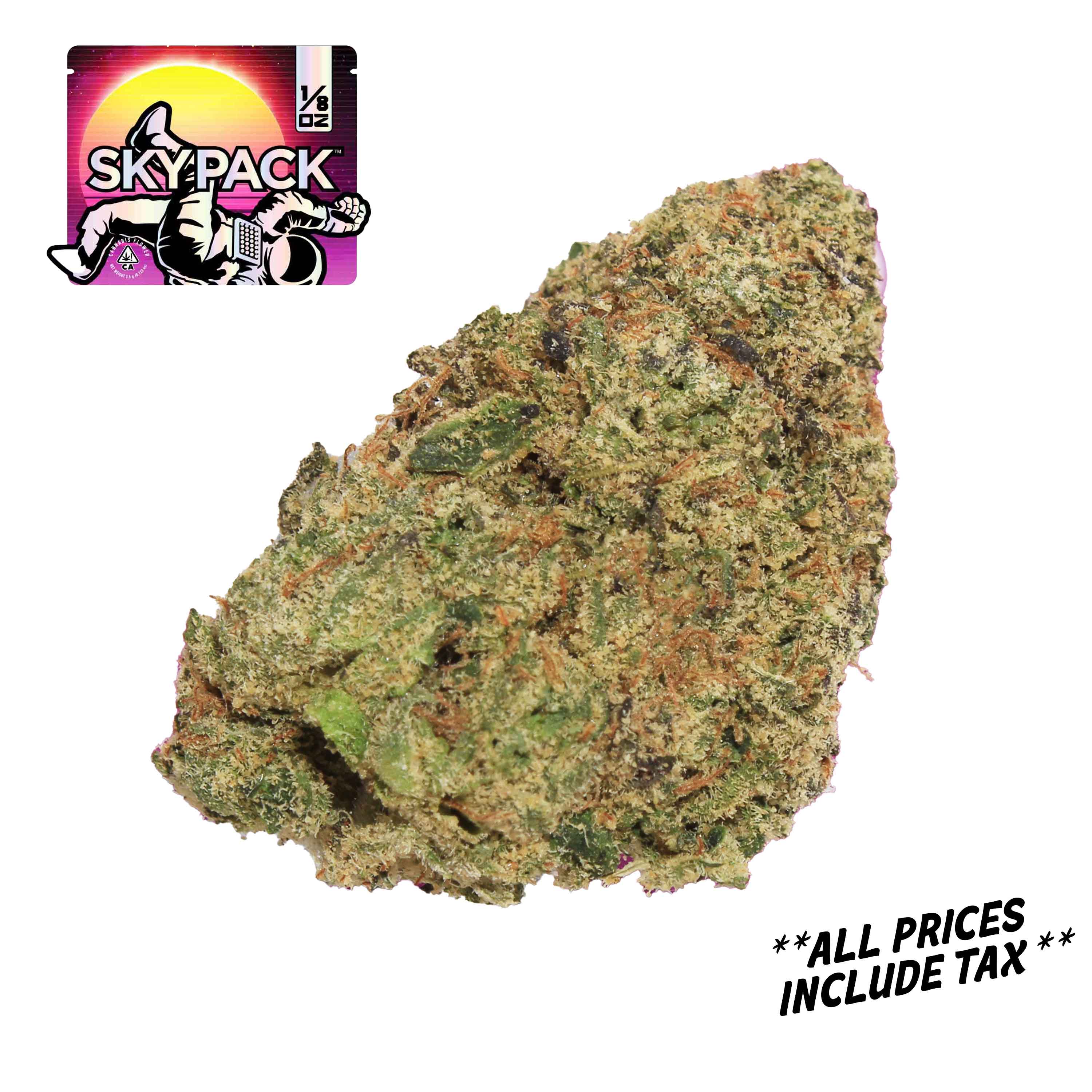 A few products consistently show up across the most locations. Black Cherry Pressure 3.5g - (3 stores), Space Mintz - 3.5g (3 stores), and Space Mintz 3.5g - (3 stores). Skypack has built a growing regional presence. Available at 10 dispensaries in California. The catalog skews heavily toward flowers. Offerings include 41 flowers, 12 concentrates, and 9 pre-rolls. Pricing lands in the premium range for cannabis products. Products run from $15.00 to $169.99.