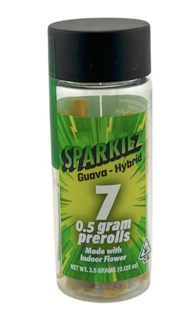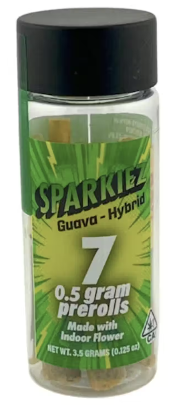 A few products consistently show up across the most locations. Sparkiez - Guava (Hybrid) 7pk Preroll (5 stores), Sparkiez 7pk Prerolls 3.5g Guava (4 stores), and Sparkiez 7pk Prerolls 3.5g Hindu Kush (4 stores).