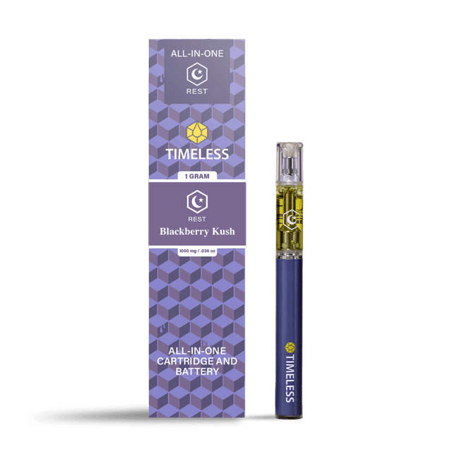 A few products consistently show up across the most locations. Timeless: Vape | Blackberry Kush | All-In-One | 0.5g (14 stores), Timeless: Vape | Cherry Icy | Cartridge | 1g (13 stores), and Timeless: Vape | Blue Dream | Cartridge | 1g (13 stores).